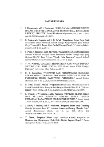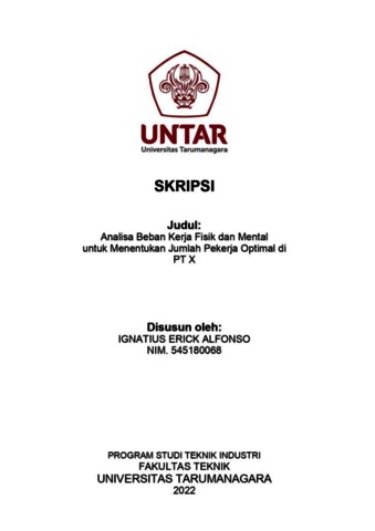 Alfonso, Ignatius Erick (2022) Analisa beban kerja fisik dan mental untuk menentukan jumlah pekerja optimal di PT X (T. Ind - 753). Skripsi thesis, Universitas Tarumanagara.