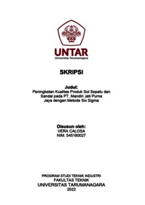 Calosa, Vera (2022) Peningkatan kualitas produk sol sepatu dan sandal pada PT.Mandiri Jati Purna Jaya dengan metode six sigma (T. Ind - 712). Skripsi thesis, Universitas Tarumanagara.