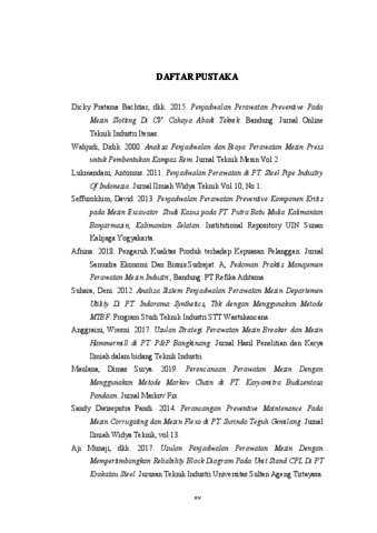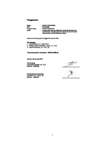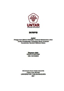 Kharisma, Shinta (2021) Penggunaan metode reliability centered maintenance untuk usulan penjadwalan perawatan mesin di industri accessories garment mahkota utama (T. Ind - 711). Skripsi thesis, Universitas Tarumanagara.