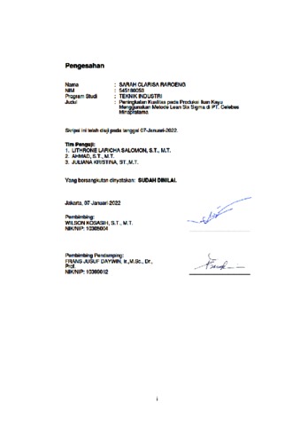Raroeng, Sarah Clarisa (2022) Peningkatan kualitas pad aproduksi ikan kayu menggunakan metode lean six sigma di PT. Celebes Minapratama (T. Ind - 734). Skripsi thesis, Universitas Tarumanagara.