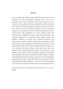 Ikan kayu adalah produk olahan ikan yang menjadi makanan khas Sulawesi Utara. Pengolahan ikan kayu membutuhkan penanganan khusus karena proses produksinya secara manual. Penjaminan mutu terhadap produk ikan kayu merupakan hal yang penting untuk dapat menghasilkan produk yang bermutu baik. Penelitian ini menjelaskan tentang perbaikan dan peningkatan kualitas pada proses produksi ikan kayu. Penelitian ini dilakukan di sebuah perusahaan manufaktur yang memproduksi ikan kayu. Penelitian ini menggunakan studi kasus tunggal dengan teknik pengambilan data random sampling. Penting bagi perusahaan untuk memperhatikan kualitas produk dengan berkomitmen untuk memenuhi pengendalian dan penjaminan kualitas terhadap produk yang dihasilkan. Penelitian ini bertujuan untuk menganalisis pemborosan dan merekomendasikan tindakan perbaikan sehingga dapat meningkatkan kualitas produk ikan kayu. Dalam meningkatkan kualitas digunakan metode lean six sigma dengan tahapan DMAIC. Hasil penelitian menunjukkan bahwa menunggu, cacat, dan penyimpanan merupakan pemborosan yang sering terjadi pada proses produksi ikan kayu. Hasil kapabilitas proses untuk Cp dan Cpk kurang dari 1, maka kapabilitas proses tergolong rendah. Pada akhirnya, penelitian ini menunjukkan bahwa perusahaan telah mampu mengidentifikasi penyebab pemborosan sehingga dapat meningkatkan efisiensi dan kualitas produk ikan kayu. Hasil implementasi memberikan dampak positif, dimana nilai DPMO menurun menjadi 759,35811 dan tingkat sigma meningkat menjadi 4,671. Akan tetapi, evaluasi perlu dilakukan secara terus-menerus agar dapat memberikan manfaat yang baik bagi perusahaan. Kata kunci: penjaminan mutu, peningkatan kualitas, pemborosan, lean six sigma, DMAIC
