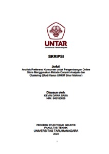 Saka, Kevin Dawa (2022) Analisis preferensi konsumen untuk pengembangan online store menggunakan metode conjoint analysis dan clustering (studi kasus umkm sinar makmur) (T. Ind - 731). Skripsi thesis, Universitas Tarumanagara.