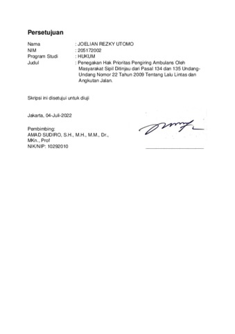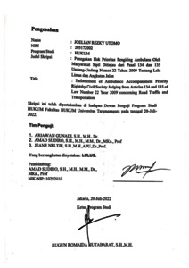 | Uncontrolled Keywords: | Hak Prioritas Pengguna Jalan, Ambulans, Lalu Lintas |