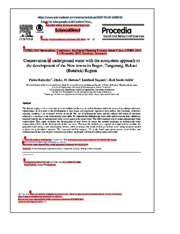 Rahardjo, Parino Concervation of underground water with the ecosystem approach to the development of the New town in Bogor. Tangerang, Bekasi (Botabek) Region. CITIES 2015 International Conference Intelligent Planning Towards Smart Cities, CITIES 2015, 3-4 November 2015, Surabya, Indonesia.