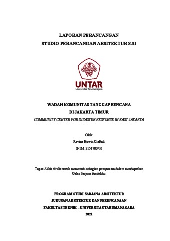Ciafudi, Revina Howin (2021) Wadah komunitas tanggap bencana di Jakarta Timur. Skripsi thesis, Universitas Tarumanagara.