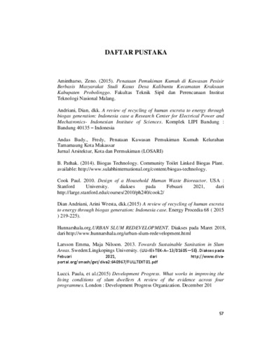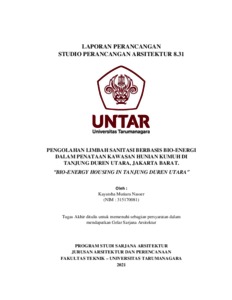 Nasser, Kayatsha Mutiara (2021) Pengolahan limbah sanitasi berbasis bio-energi dalam penataan kawasan hunian kumuh di Tanjung Duren Utara, Jakarta Barat. Skripsi thesis, Universitas Tarumanagara.