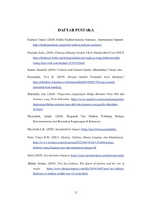 Fesyen cepat merupakan sebuah fenomena, dimana dengan sistem yang mengikuti tren terbaru dan tingkat permintaan tinggi konsumen yang berpengaruh terhadap jumlah produksi fesyen. Hal ini mempengaruhi sistem rantai produksi dan gaya hidup masyarakat modern, terutama kaum gen z dan gen y (milenial). Produksi massal yang terjadi menyebabkan banyaknya sumber daya yang dibutuhkan dan penggunaan material yang berkualitas rendah (tidak tahan lama) untuk mengejar tren dan harga terjangkau. Ditambah gaya hidup masyarakat modern yang cenderung mengikuti tren menyebabkan konsep linear dalam fesyen, yaitu ambil pakai-buang berjalan. Sistem ini entunya berdampak pada kerusakan lingkungan, khususnya pada material yang sulit terurai. Fenomena ini memunculkan inovasi masyarakat terkait dengan teknologi jamur yang menghasilkan miselium sebagai material ramah lingkungan serta upaya yang dilakukan oleh suatu komunitas kreatif dalam pengelolaan fesyen. Dengan demikian, diharapkan arsitektur dapat berperan sebagai wadah yang menunjang aktivitas dengan penerapan konsep cradle-to-cradle (upcycling). Konsep ini mengajak masyarakat, khususnya masyarakat modern untuk lebih sadar akan pengelolaan dan pemanfaatan fesyen yang di dukung dengan penggunaan material alternatif seperti miselium yang merupakan akar dari jamur yang merupakan material yang ramah lingkungan. Selain itu, dapat meminimalisir penggunaan sumber daya, energi, masyarakat modern yang lebih teredukasi, serta komunitas kreatif lainnya agar dapat mendorong kreativitas dan inovasi untuk menghadirkan lingkungan yang lebih positif. Kata kunci: Arsitektur; Fast Fashion; Kerusakan Lingkungan; Kreatif; Miselium