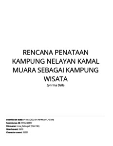 Rahardjo, Parino Rencana Penataan Kampung Nelayan Kamal Muara Sebagai Kampung Wisata. Rencana Penataan Kampung Nelayan Kamal Muara Sebagai Kampung Wisata.
