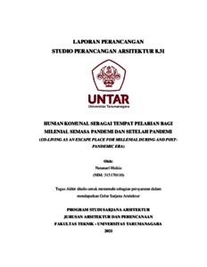 Hizkia, Natanael (2021) Hunian komunal sebagai tempat pelarian bagi milenial semasa pandemi dan setelah pandemi. Skripsi thesis, Universitas Tarumanagara.