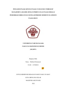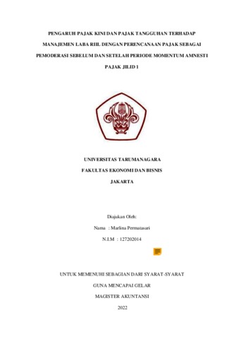 Permatasari, Marlina (2022) PENGARUH PAJAK KINI DAN PAJAK TANGGUHAN TERHADAP MANAJEMEN LABA RIIL DENGAN PERENCANAAN PAJAK SEBAGAI PEMODERASI SEBELUM DAN SETELAH PERIODE MOMENTUM AMNESTI PAJAK JILID 1. Masters thesis, Universitas Tarumanagara.