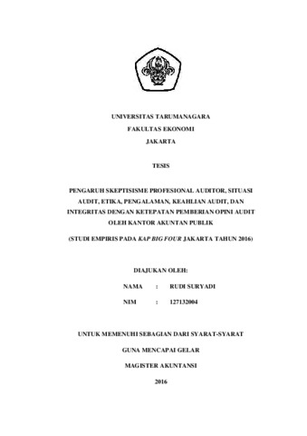 Kata kunci : skeptisisme profesional auditor, situasi audit, etika, pengalaman,