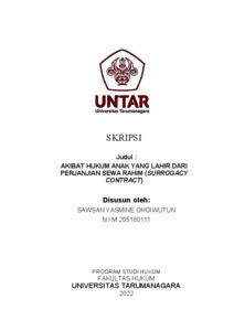 Ohoiwutun, Sawsan Yasmine (2022) Akibat Hukum Anak Yang Lahir Dari Perjanjian Sewa Rahim (Surrogacy Contract). Skripsi thesis, Universitas Tarumanagara.