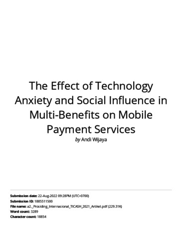 TURNITIN The Effect of Technology Anxiety and Social Influence in Multi-Benefits on Mobile Payment Services.pdf Download (1MB) | Preview |