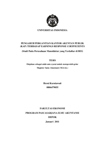 Herni kurniawati, Tesis (2011) Tesis Pengaruh pergantian kantor akuntan publik (KAP) terhadap earning response coefficients. Masters thesis, Universitas Tarumanagara.
