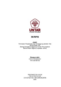 Pramadani, Kevin (2022) Penerapan, Pengelolaan dan Pertanggung-jawaban atas Benda Sitaan dan Barang Rampasan Negara di Rumah Penyimpanan Benda Sitaan Negara (RUPBASAN JAMBI). Skripsi thesis, Universitas Tarumanagara.