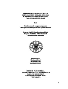 Helmi, Mochamat (2010) Tesis “Perbandingan Onset dan Durasi Bupivakain 0,5% Isobarik 20 Mg dan Bupivakain 0,5% Hiperbarik 20 Mg pada Subarachnoid Block”. Masters thesis, Universitas Gadjah Mada Jogjakarta.