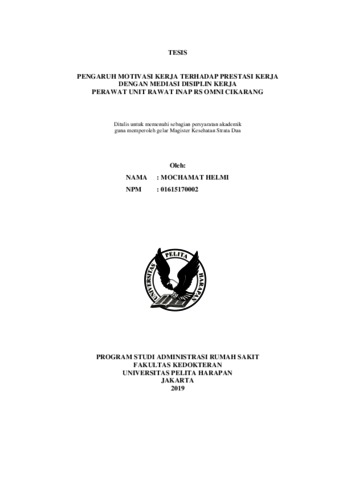 Helmi, Mochamat (2019) Tesis “Pengaruh Motivasi Kerja terhadap Prestasi Kerja dengan Mediasi Disiplin Kerja Perawat Unit Rawat Inap RS Omni Cikarang”. Masters thesis, Universitas Pelita Harapan.