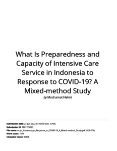Helmi, Mochamat (2021) Turnitin “What Is Preparedness and Capacity of Intensive Care Service in Indonesia to Response to COVID-19? A Mixed-method Study“. Open Access Macedonian Journal of Medical Sciences, 9 (B). pp. 1686-1694. ISSN 1857-9655 (Unpublished)