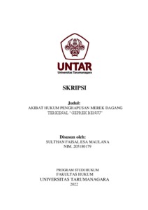 Maulana, Sulthan Faisal Esa (2022) Akibat Hukum Penghapusan Merek Dagang Terkenal “GEPREK BENSU". Skripsi thesis, Universitas Tarumanagara.