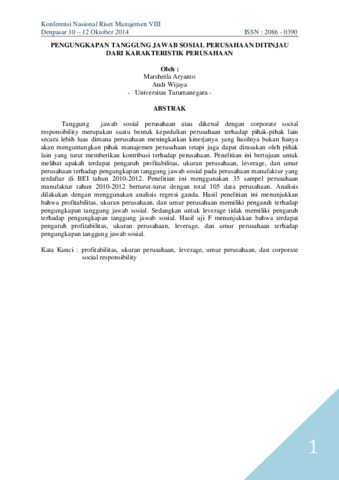Andi wijaya, Dokumen (2014) Pengungkapan Tanggung Jawab Sosial Perusahaan Ditinjau Dari Karakteristik Perusahaan. Pengungkapan Tanggung Jawab Sosial Perusahaan Ditinjau Dari Karakteristik Perusahaan. ISSN 2086-0390