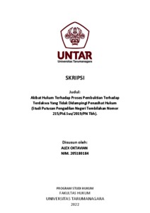 Oktavian, Alex (2022) Akibat Hukum Proses Pembuktian Terhadap Terdakwa Yang Tidak Didampingi Penasihat Hukum Dari Perspektif Hukum Acara Pidana (Studi Putusan Pengadilan Negeri Tembilahan Nomor 215/Pid.Sus/2019/PN.Tbh.). Skripsi thesis, Universitas Tarumanagara.