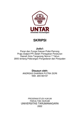 Dori, Andreas Dharma Putra (2022) Peran dan Fungsi Satpol PP dalam Penegakan Peraturan Daerah Kota Tangerang Nomor 7 Tahun 2005 tentang Pelarangan Pengedaran dan Penjualan Minuman Beralkohol. Skripsi thesis, Universitas Tarumanagara.