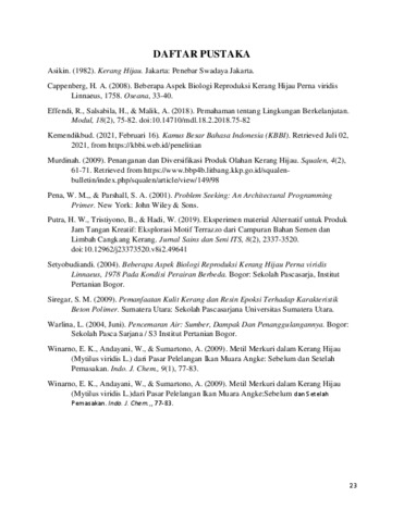 Pencemaran limbah merupakan fenomena global yang belakangan ini menjadi permasalahan bagi suatu perkotaan, salah satu limbah yang memberikan dampak cukup besar terhadap lingkungan adalah limbah yang berada di Teluk Jakarta. Salah satu lokasi yang merasakan langsung dampak tersebut adalah Kampung Kerang Ijo, Muara Angke, Pluit, Jakarta Utara. Fenomena yang menarik di Kampung Kerang Ijo adalah Sebagian besar masyrakatnya berprofesi sebagai Nelayan Kerang. Namun Kerang yang didapatkan terkontaminasi oleh logamlogam berat yang diantaranya adalah zat Merkuri. Masalah lain yang muncul di kawasan ini adalah Limbah Kulit Kerang yang menumpuk. Jika Hal ini terus terjadi, maka kondisi ini akan memperburuk kondisi ekologi setempat hingga ke ekologi yang lebih makro. Melalui metode Programming Framework dan berbagai penelitian, memungkinkan untuk mendesain bangunan yang membudidayakan, mengolah, dan memanfaatkan kerang untuk mengurangi dampak buruk ekologi pada kawasan tersebut. Dengan melakukan biofiltrasi secara alami, akan mengurangi dampak kontaminasi zat merkuri pada kerang, dan juga kandungan logam berat pada perairan yang lebih luas. Pengolahan berkelanjutan Kulit Kerang agar dapat dimanfaatkan secara maksimal, dan meminimalkan limbahnya terhadap lingkungan. Dengan adaptasi tersebut, tentu mampu mengurangi dampak buruk terhadap Ekologi di kawasan tersebut.