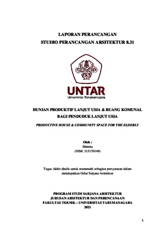 Shienia, Shienia (2021) Hunian produktif lanjut usia & ruang komunal bagi penduduk lanjut usia. Skripsi thesis, Universitas Tarumanagara.