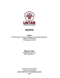 Cahyadi, Bondan (2022) Perlindungan Konsumen Mengenai Pertanggungjawaban Tagihan Pembayaran Penjumperan Listrik. Skripsi thesis, Universitas Tarumanagara.