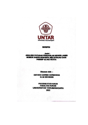 Darmawan, Defarai Qarima (2022) Analisis Putusan Pengadilan Negeri Jambi Nomor 516/Pid.B/2019/PN.Jmb Ditinjau dari Prinsip Ultra Petita. Skripsi thesis, Universitas Tarumanagara.