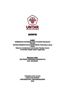 Rismansyah, Delpedro Marhaen (2022) Kebebasan Akademik dan Otonomi Keilmuan Dalam Sistem Pemerintahan Demokrasi Pancasila (Studi Kasus Webinar Constitutional Law Society Fakultas Hukum Universitas Gadjah Mada Yogyakarta). Skripsi thesis, Universitas Tarumanagara.