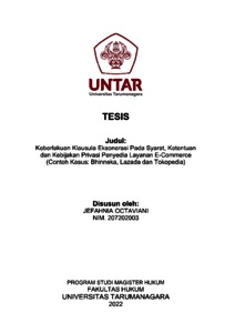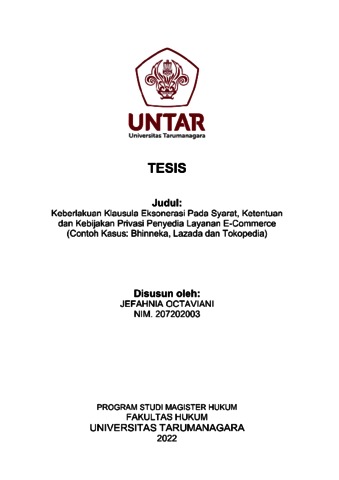 Octaviani, Jefahnia (2022) Keberlakuan Klausula Eksonerasi Pada Syarat, Ketentuan dan Kebijakan Privasi Penyedia Layanan E-Commerce (Contoh Kasus: Bhinneka, Lazada dan Tokopedia). Masters thesis, Universitas Tarumanagara.