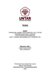 Dzulfikar, Addin (2022) Tanggung Jawab Keselamatan Lalu Lintas Penerbangan Saat Konflik (Studi Kasus Afghanistan Saat Taliban Mengambil Alih Pemerintah). Masters thesis, Universitas Tarumanagara.