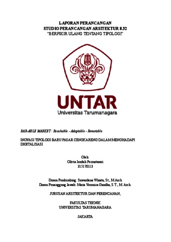 Permatasari, Olivia Iendah (2021) Rar-able market (reachable-adaptable-remotable) market: inovasi tipologi baru pasar cengkareng dalam menghadapi digitalisasi. Skripsi thesis, Universitas Tarumanagara.