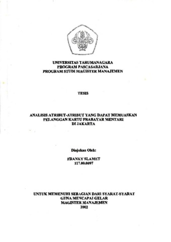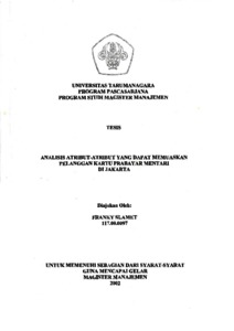 Frangky Selamat, Tesis (2002) Analisi atribut-atribut yang dapat memuaskan pelanggan kartu prabayar mentari di Jakarta. Masters thesis, Universitas Tarumanagara.