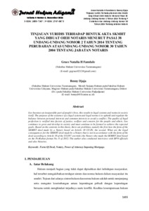 Famdale, Grace Natalia H and Djaja, Benny (2021) Tinjauan Yuridis Terhadap Bentuk Akta SKMHT yang Dibuat Oleh Notaris Menurut Pasal 38 Undang-Undang Nomor 2 Tahun 2014 Tentang Perubahan Atas Undang-Undang Nomor 30 Tahun 2004 Tentang Jabatan Notaris. Jurnal Hukum Adigama, 2 (2). ISSN E: 2655-7347, P: 2747-0873