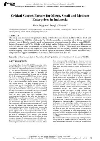 frangky selamat, dokumen (2021) Critical success factors for micro_smal and medium enterprises in Indonesia. Critical success factors for micro_smal and medium enterprises in Indonesia. ISSN 2352-5398 / 978-94-6239-413-1