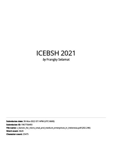 Frangky Slamet, Dokumen (2021) Turnitin Critical success factors for micro_smal and medium enterprises in Indonesia. Critical success factors for micro_smal and medium enterprises in Indonesia. ISSN 2352-5398 / 978-94-6239-413-1