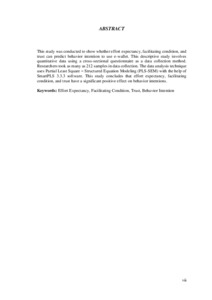 This study was conducted to show whether effort expectancy, facilitating condition, and trust can predict behavior intention to use e-wallet. This descriptive study involves