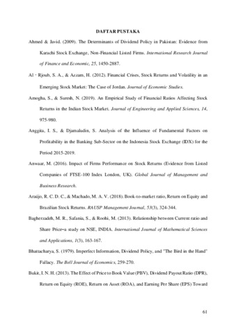 The objective of this research is to discover the effect of quick ratio, return on asset, earning per share, return on equity, and net profit margin towards stock return in banking firms. The number of companies chosen for this research is 20 companies that are listed under the