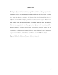 Keyword : Lifestyle, Hedonism, Consumer Behavior, Pandemic