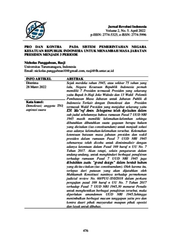Nicholas Panggabean, Penulis 1 and Rasji, Penulis 2 (2022) PRO DAN KONTRA PADA SISTEM PEMERINTAHAN NEGARA KESATUAN REPUBLIK INDONESIA UNTUK MENAMBAH MASA JABATAN PRESIDEN MENJADI 3 PERIODE. PRO DAN KONTRA PADA SISTEM PEMERINTAHAN NEGARA KESATUAN REPUBLIK INDONESIA UNTUK MENAMBAH MASA JABATAN PRESIDEN MENJADI 3 PERIODE, 2 (5). pp. 476-483. ISSN p-ISSN: 2774-5325, e-ISSN: 2774-5996