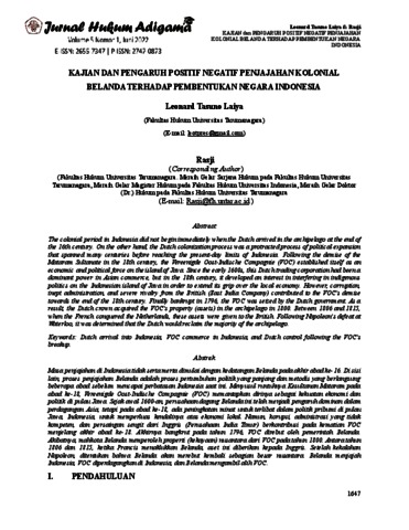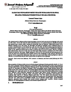 Leonard Tasuno Laiya, Penulis 1 and Rasji, Penulis 2 (2022) KAJIAN DAN PENGARUH POSITIF NEGATIF PENJAJAHAN KOLONIAL BELANDA TERHADAP PEMBENTUKAN NEGARA INDONESIA. KAJIAN DAN PENGARUH POSITIF NEGATIF PENJAJAHAN KOLONIAL BELANDA TERHADAP PEMBENTUKAN NEGARA INDONESIA, 5 (1). pp. 1647-1669. ISSN 2655-7347, 2747-0873