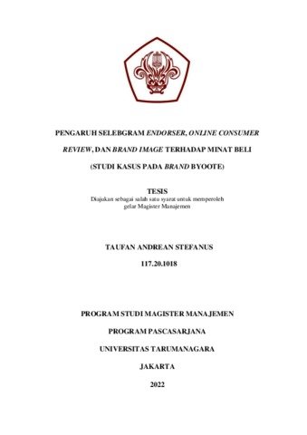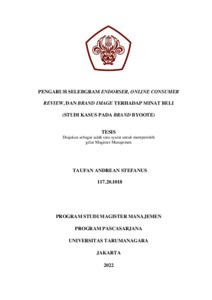 STEFANUS, TAUFAN ANDREAN (2021) PENGARUH SELEBGRAM ENDORSER, ONLINE CONSUMER REVIEW, DAN BRAND IMAGE TERHADAP MINAT BELI (STUDI KASUS PADA BRAND BYOOTE). Masters thesis, Universitas Tarumanagara.