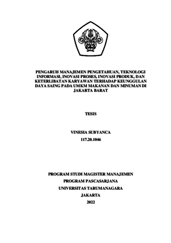 SUBYANCA, VINESIA (2021) PENGARUH MANAJEMEN PENGETAHUAN, TEKNOLOGI INFORMASI, INOVASI PROSES, INOVASI PRODUK, DAN KETERLIBATAN KARYAWAN TERHADAP KEUNGGULAN DAYA SAING PADA UMKM MAKANAN DAN MINUMAN DI JAKARTA BARAT. Masters thesis, Universitas Tarumanagara.