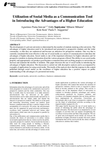 miharni, dokumen (2021) Utilization of Social Media as a Communication Tool in Introducing the Advantages of a Higher Education. Utilization of Social Media as a Communication Tool in Introducing the Advantages of a Higher Education. ISSN ISSN 2352-5398 / ISBN 978-94-6239-567-1