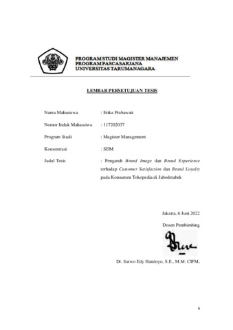 PRABAWATI, ERIKA (2021) PENGARUH BRAND IMAGE DAN BRAND EXPERIENCE TERHADAP CUSTOMER SATISFACTION DAN BRAND LOYALTY PADA KONSUMEN TOKOPEDIA DI JABODETABEK. Masters thesis, Universitas Tarumanagara.