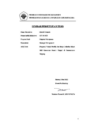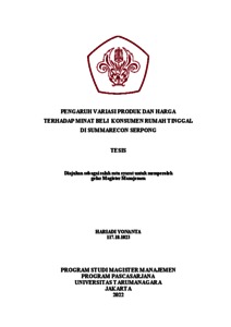 YONANTA, HARIADI (2021) PENGARUH VARIASI PRODUK DAN HARGA TERHADAP MINAT BELI KONSUMEN RUMAH TINGGAL DI SUMMARECON SERPONG. Masters thesis, Universitas Tarumanagara.