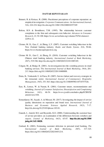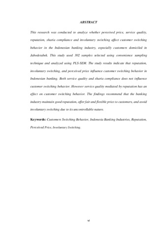 customer switching behavior. However service quality mediated by reputation has an effect on customer switching behavior. The findings recommend that the banking industry maintain good reputation, offer fair and flexible price to customers, and avoid involuntary switching due to its uncontrollable nature.