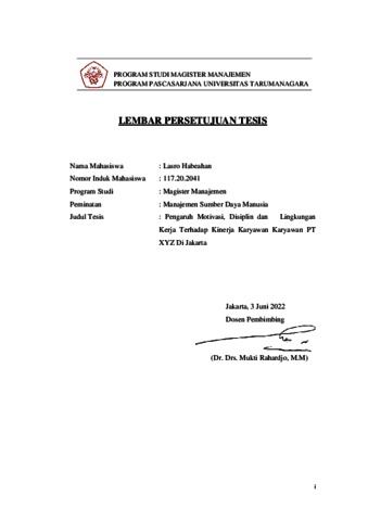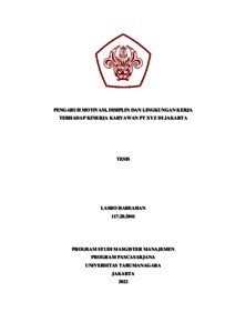 HABEAHAN, LASRO (2021) PENGARUH MOTIVASI, DISIPLIN DAN LINGKUNGAN KERJA TERHADAP KINERJA KARYAWAN PT XYZ DI JAKARTA. Masters thesis, Universitas Tarumanagara.